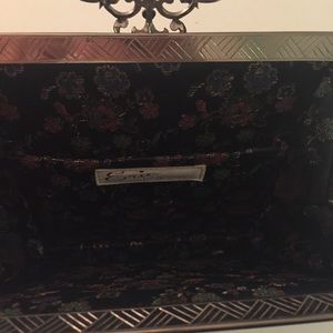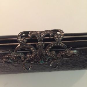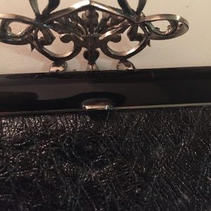 Great pebble leather black vintage clutch. Eric New York. Antique looking closure with pretty green stone. Approximately 8.5 x 5.5. Small scratch on black metal part where the closure is.