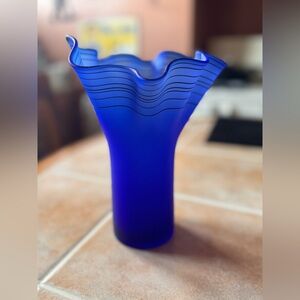 Call outs: on the rim there is a tiny chip (refer to photos) you can’t really notice it until you look for it. At the bottom of the vase there is a chip towards the edge of the vase. When the vase is seating on a surface you can’t really notice unless you pick the piece up and look underneath. Underneath on the bottom there is also some kind of mark their most likely from when the piece was made.