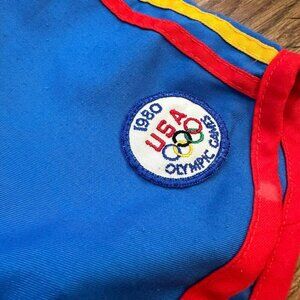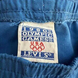 Vintage collectible Levi’s 1980 Olympic Games athletic shorts with elastic waist
