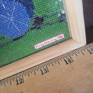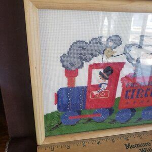 Vintage completed Needlepoint/Cross Stitch children's Circus Train Framed art
