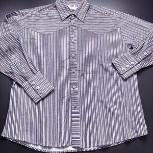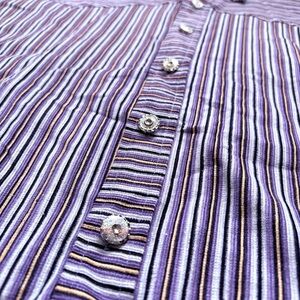 Vintage corduroy embellished button up large mens shirt collared striped cuffed sleeves long sleeves