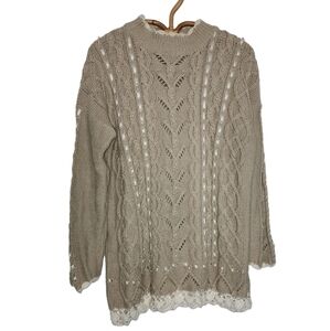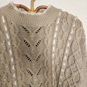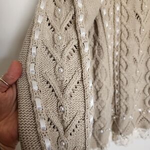 Vintage cottagecore knit ribbon and pearl beaded sweater