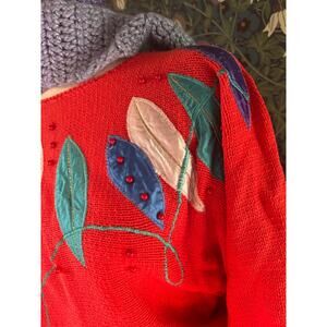 Vintage cotton blend sweater in red with embroideries, size M