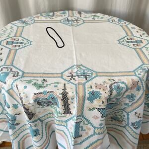 NOTE: small dot stains Please see photos 6,7,8 Gives close up and the area of where it is on table cloth.
