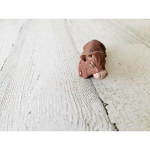 about 1.5 in tall by 3.5x1 in, damage on horns, otherwise good color
