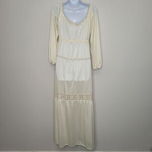 Vintage cream 70s crochet maxi long sleeve castlecore cottage sleep dress Small