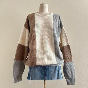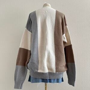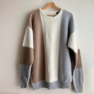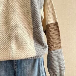 Vintage cream gray tan color block knit pullover sweater. 100% cotton.