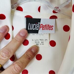 Vintage cream red polka dot satin pleated rockabilly pinup button top 10P