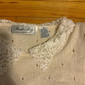 Vintage cream sweater with pretty lace neckline detail. Shoulder pads, yes!