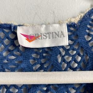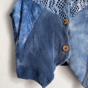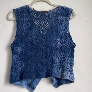 Vintage crocheted lace button up sleeveless vest tank top; no size tag; SEE MEASUREMENTS