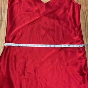 Stunning red satin slip dress with a sleek design. Perfect for any occasion.