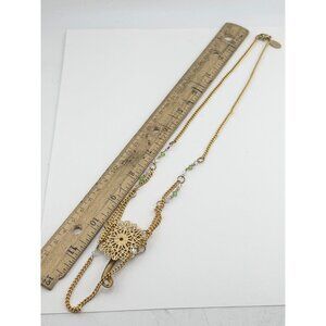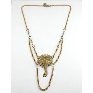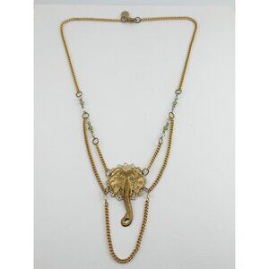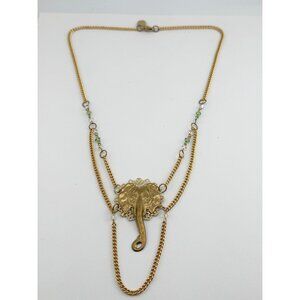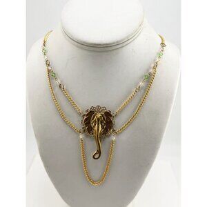 Vintage crystal filigree elephant chain necklace. Green and clear crystals on gold tone chain with filigree elephant pendant super cute. MN54GH.