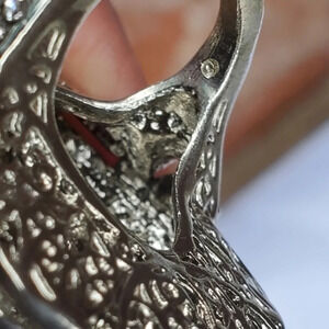 Incredibly well made piece. Crystal stones or well pasted. An absolutely breathtaking piece in silver tone with lovely filigree interior.