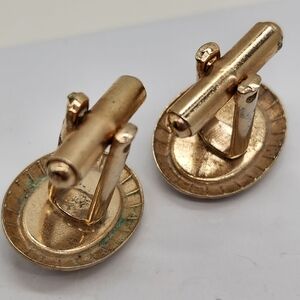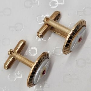 Vintage cufflinks golden tone bullet back red white framed oval jewelry formal