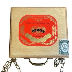 Vintage custom cigar box purse gold cross body chain shoulder strap 7” x 7.5”