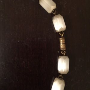 Beautiful vintage necklace of white cut glass barrel shaped beads with "brass" links between. Original clasp (rare to find!) simple and elegant. Purchased from highly reputable boutique. Super sweet piece and rare find!