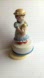 Charming ceramic music box girl figure holding a doll. Features a cute hat and white with blue dress. Doll has a pink dress.