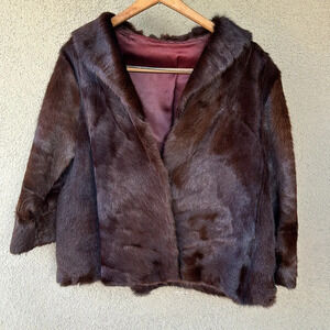 Vintage dark rich brown ranch mink fur coat short gorgeous