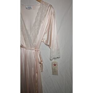 Vintage deadstock Nicole Womens Full Length Blush Nylon Belted Robe Sz SP Lace