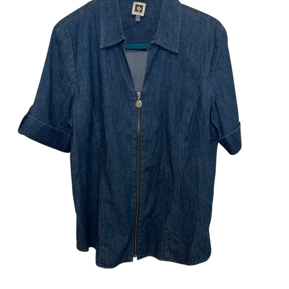 Vintage denim jeans shirt jacket Anne Klein zipper L large short sleeve nwot new