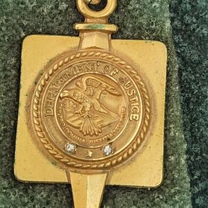 Diamond Chip (2) Pendant Fob Medal of Honour, Dept of Justice, Legacy INS 10-14K
