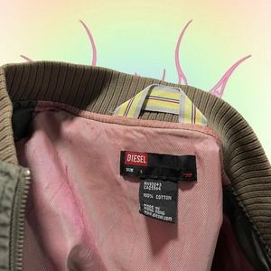 Y2K Diesel Olive Bomber Jacket with Diesel Logo on Back