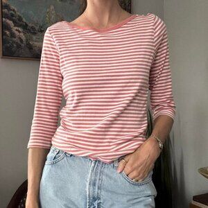Vintage dockers pink and white striped boat neck top with 3/4 sleeves