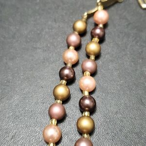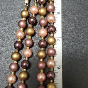Pretty beaded necklace has gold, pink and maroon colored beads with gold tone accents. See photos for condition.