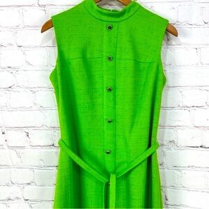 Vintage dress Green vibrantSleeveless Maxi statement buttons 1950’s 1960’s