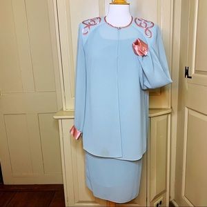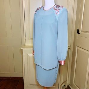 Vintage 60s 70s PATRA SET sz S/Petite embroidered skirtsuit silk formal blue flowy chiffon skirt suit evening prom wedding embroider