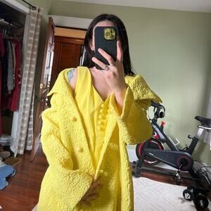 Vintage dress and coat set yellow spring textured puffer bright unique