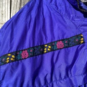 Vintage edelweiss Purple Ski Jacket with floral style trimmings