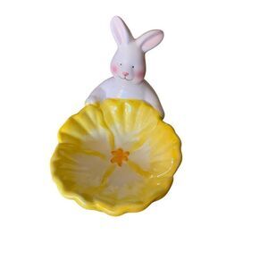 Vintage embossed floral, ceramic dish with rabbit/bunny spring Easter