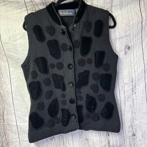 Vintage embroidered Beaded Gray and Black Women's Vest Medium