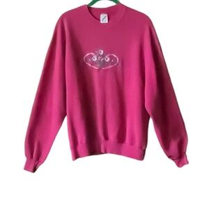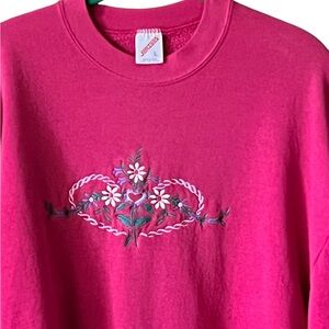 Vintage embroidered fuchsia, pink floral women’s sweatshirt size large