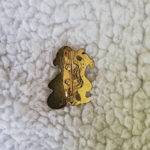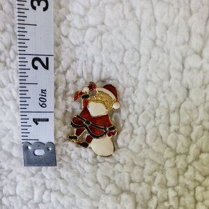 Santa Claus in red, white, and black enamel with gold-tone accents, carrying a sack of presents.