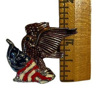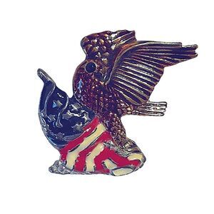 Patriotic Pin depicts a Bald Eagle holding the USA Stars and Stripes flag. In excellent condition