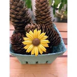 Bright and cheery daisy brooch, just in time for Spring! // 2" across // enameled metal // Estate find // We note any flaws found on our items, but please see photos for details, measurements, and any missed minor imperfections (if applicable) // All items come from a smoke-free (but cat friendly) home and are sold as-is // Combined shipping is always available // We strive to use re-used, recycled, and biodegradable shipping supplies whenever possible // Thanks for shopping with Porch Light Vintage!!