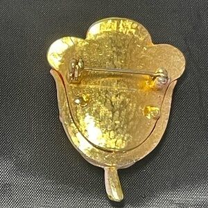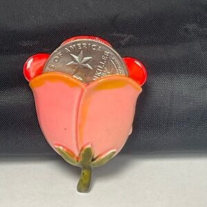This whimsical pink and green enamel vintage brooch features and open tulip. It would be adorable on a green sweater or as a bag charm. You can even put a small surprise inside the tulip.