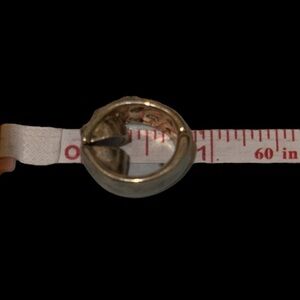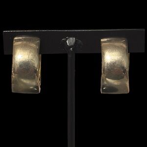 These unique earrings have a magnetic clip closure with hinge. They are an intricate filigree design with unknown jewels in a yellowish gold set in an antique gold tone. Metal there are no hallmarks to indicate brand. This was a recent estate find.