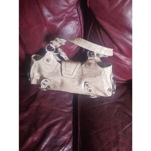 Vintage exotic leather guess bag neutral color with silver tone hardware