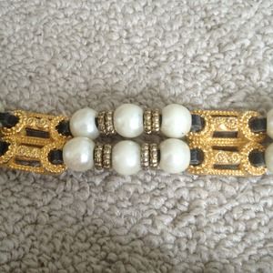 Leather is a tad warn but for the age of this belt it is in great quality. This Gold, and pearl belt will dress up any outfit.