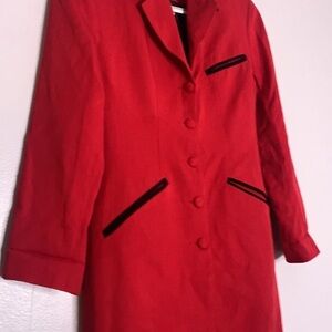 Vintage express long blazer jacket red black velvet accent women’s XS new