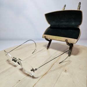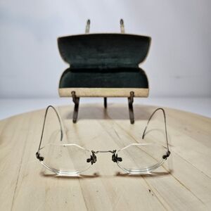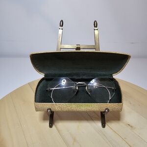 Vintage eyeglasses Rimless Frame In Case Silver Tone Unbranded shows signs of wear sold as is see pictures for reference in case