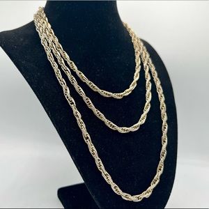 Vintage, very faded gold tone spiral link chain necklace, in good condition other than the finish is faded nearly to silver. Selling as-is. Appx 52” long, signed MONET on hang tag.