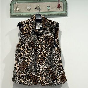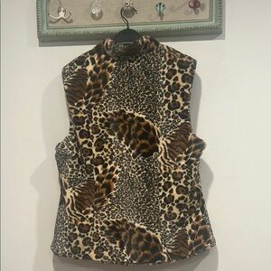 Vintage faux fur animal print Women's Leopard cheetah tiger Vest women’s XL