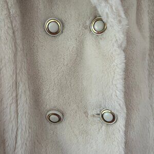 Super cute, cream-ish color ! The coat itself is pretty light for a faux fur coat, so it's great for wearing every day : )