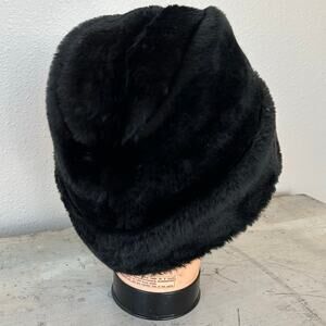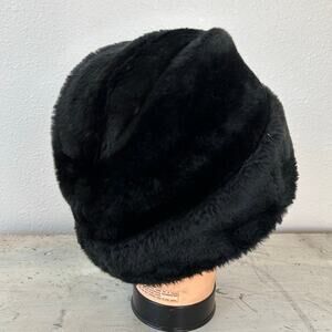 Stay warm and stylish this winter with this classic black faux fur hat. This hat features a soft, plush faux fur exterior and a comfortable interior lining, offering excellent protection against the cold. The style is a versatile mix of a bucket hat and a Russian-style trapper, with a rounded crown and a wide, rolled brim.
