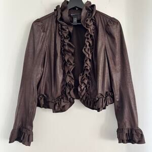 brown ruffle cardigan from INC international concepts. 100% polyester. size petite medium. in good preloved condition.