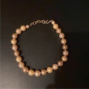 Vintage faux pearl single strand necklace 17.5 inches long. Cream/ Mauve/Pink